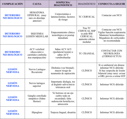 COMPLICACIONES POSTOPERATORIAS INMEDIATAS EN CIRUGÍA CERVICAL ANTERIOR