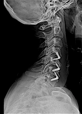 En mi opinión, las cajas intersomáticas atornilladas (CISA) son la mejor opción para corregir la cifosis cervical anterior, especialmente en patología multinivel. Además, a diferencia de «Cage Stand Alone» o caja cervical + placa; la lordosis conseguida se mantiene mejor en el tiempo.