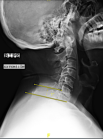 - «fijación intersomática» cuando en las RX funcionales no se aprecia movimiento sin ver «puentes óseos». Puede valer para este apartado el criterio de hallar una diferencia de <1mm entre la distancia de las respectivas apófisis espinosas en flexo/extensión o, si las espinosas no se visualizan o no están presentes, una angulación de platillos <3º también en las RX dinámicas. A estos pacientes les realizo un seguimiento anual con Rx (hasta visualizar puentes óseos o durante 3 años).