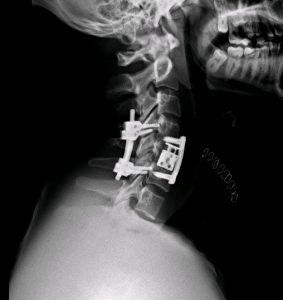 Accidente tráfico. Politrauma. Fractura cervical C5 inestable con compresión medular