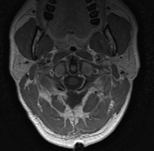 Control postoperatorio inmediato. Corte axial con gadolinio a la altura del atlas.