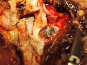 Con la pinza se procede a la decorticación del punto de entrada al pedículo.