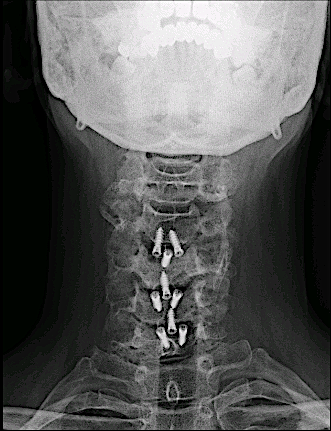 A los dos años consultó nuevamente por presentar clínica de dolor cervical irradiado a MMSS. Tras descartar recidiva, se decidió intervenir la estenosis de canal vía anterior.